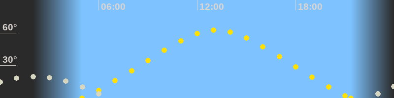 | Höchster Sonnenstand (Kulmination) | 13:10 Uhr (h = 62.5°) |