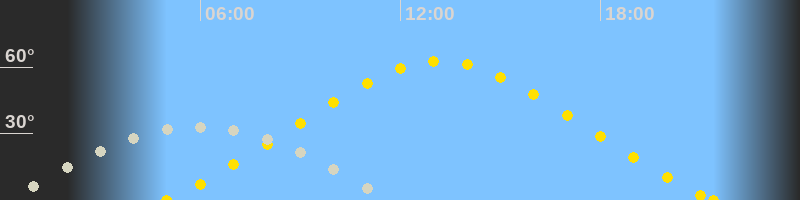 | Höchster Sonnenstand (Kulmination) | 13:11 Uhr (h = 62.7°) |