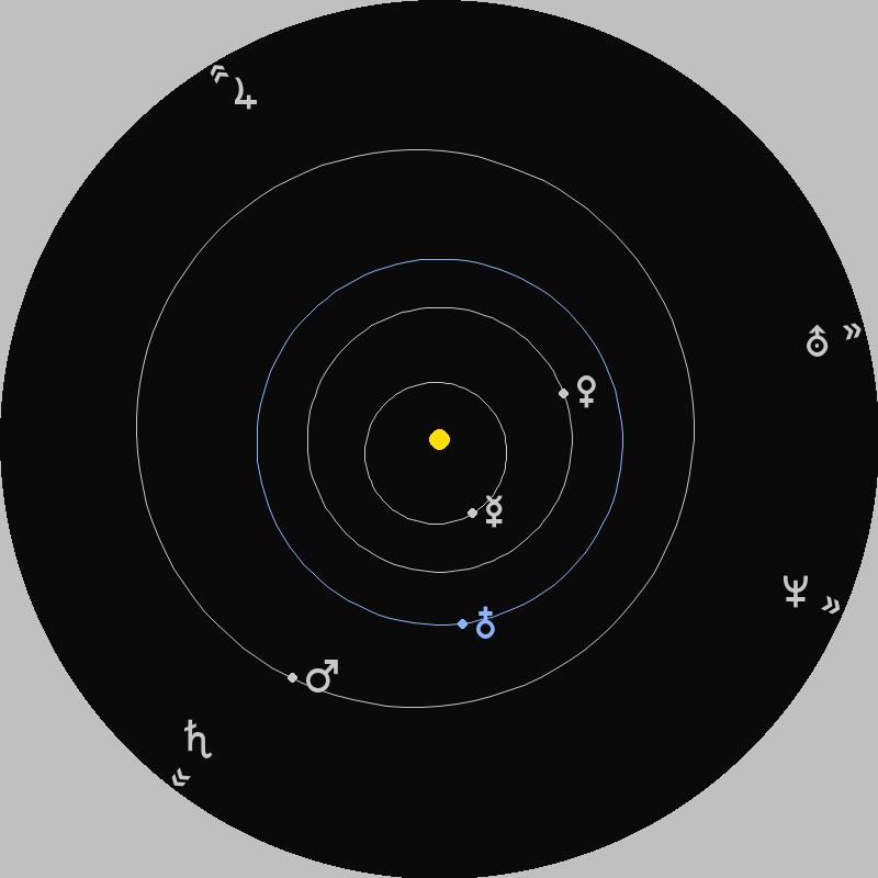| f Merkur g Venus l Erde h Mars j Jupiter S Saturn A Uranus G Neptun |