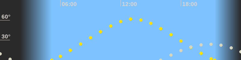 | Höchster Sonnenstand (Kulmination) | 13:15 Uhr (h = 61.8°) |