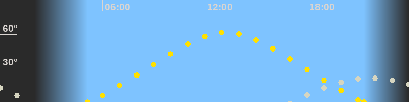 | Höchster Sonnenstand (Kulmination) | 13:15 Uhr (h = 61.7°) |