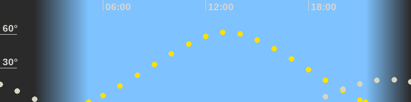 | Höchster Sonnenstand (Kulmination) | 13:15 Uhr (h = 61.6°) |