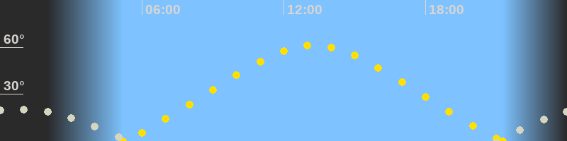 | Höchster Sonnenstand (Kulmination) | 13:15 Uhr (h = 61.2°) |