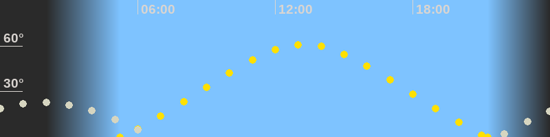 | Höchster Sonnenstand (Kulmination) | 13:16 Uhr (h = 61.1°) |