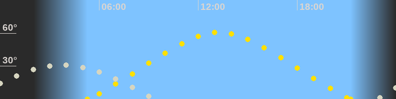 | Höchster Sonnenstand (Kulmination) | 13:16 Uhr (h = 60.8°) |