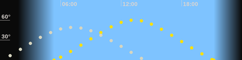 | Höchster Stand (Kulmination) | 07:06 Uhr (h=49°) |