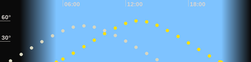 | Höchster Sonnenstand (Kulmination) | 13:16 Uhr (h = 59.9°) |