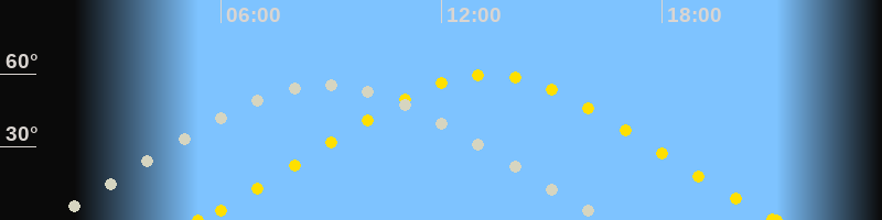 | Höchster Sonnenstand (Kulmination) | 13:16 Uhr (h = 59.7°) |