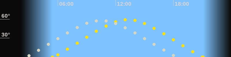 | Höchster Sonnenstand (Kulmination) | 13:16 Uhr (h = 59.3°) |