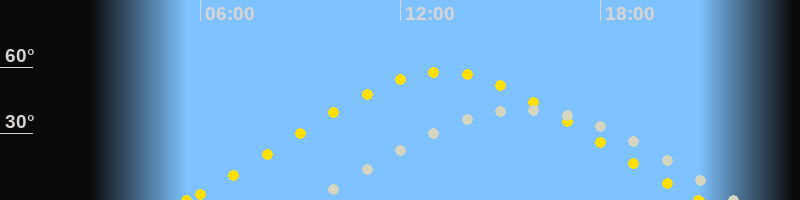 | Höchster Sonnenstand (Kulmination) | 13:16 Uhr (h = 57.7°) |