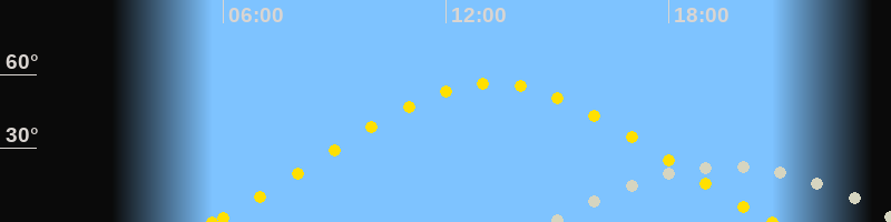 | Höchster Sonnenstand (Kulmination) | 13:16 Uhr (h = 56.4°) |