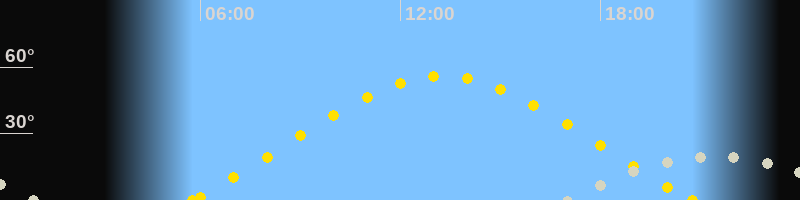 | Höchster Sonnenstand (Kulmination) | 13:16 Uhr (h = 55.9°) |