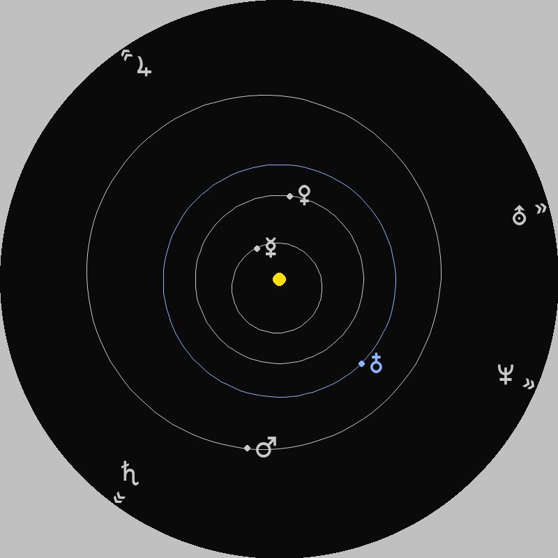 | f Merkur g Venus l Erde h Mars j Jupiter S Saturn A Uranus G Neptun |