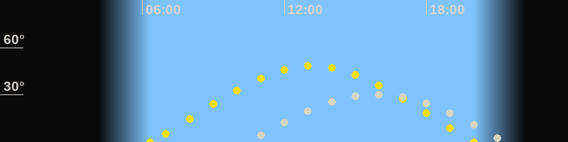 | Sonnenaufgang | 06:20 Uhr im Osten (αAz = 74.3°) |
