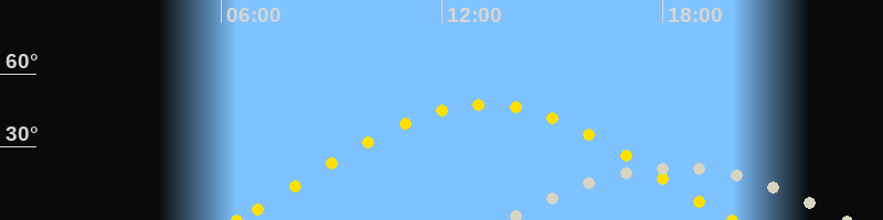 | Sonnenaufgang | 06:25 Uhr im Osten (αAz = 76.1°) |