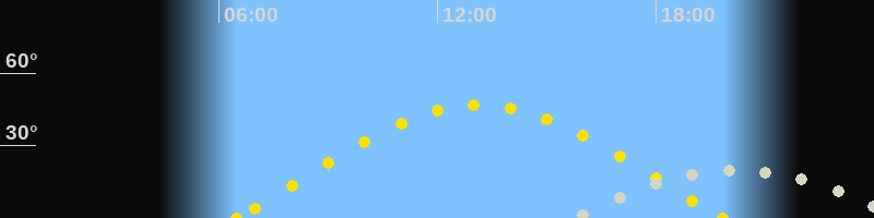 | Höchster Sonnenstand (Kulmination) | 13:09 Uhr (h = 46.7°) |
