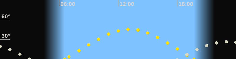 | Sonnenaufgang | 06:32 Uhr im Osten (αAz = 79°) |