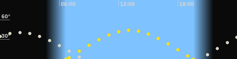 | Höchster Sonnenstand (Kulmination) | 13:07 Uhr (h = 44.1°) |