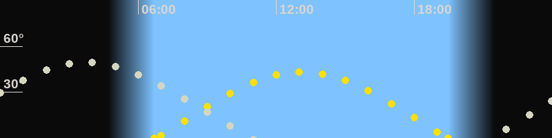 | Höchster Sonnenstand (Kulmination) | 13:06 Uhr (h = 43.4°) |