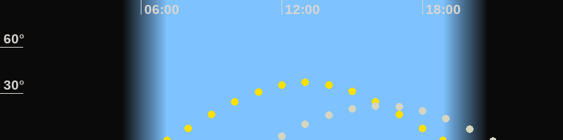 | Höchster Stand (Kulmination) | 16:15 Uhr (h=22.3°) |