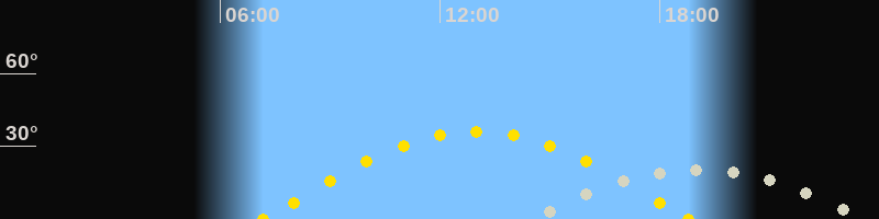 | Sonnenaufgang | 07:11 Uhr im Osten (αAz = 94.3°) |