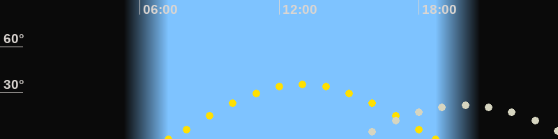 | Sonnenuntergang | 18:44 Uhr im Westen (αAz = 264.8°) |