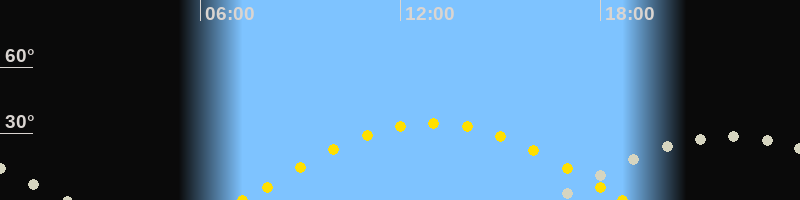 | Sonnenaufgang | 07:16 Uhr im Osten (αAz = 96.1°) |