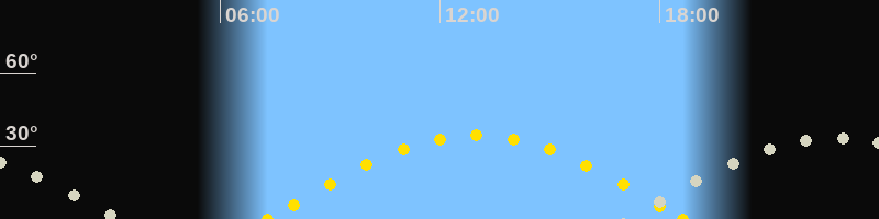 Höchster Sonnenstand (Kulmination)12:58 Uhr (h = 34.5°)