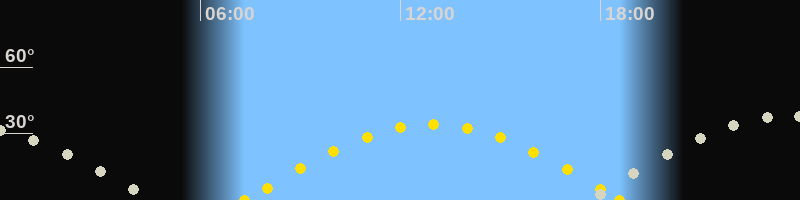 Höchster Sonnenstand (Kulmination)12:58 Uhr (h = 34.1°)