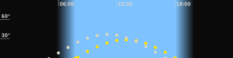 | Höchster Sonnenstand (Kulmination) | 12:54 Uhr (h = 28.5°) |