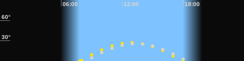 | Höchster Sonnenstand (Kulmination) | 12:54 Uhr (h = 27.4°) |