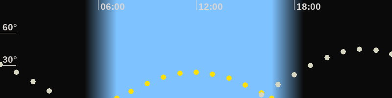 | Höchster Sonnenstand (Kulmination) | 11:53 Uhr (h = 23.8°) |