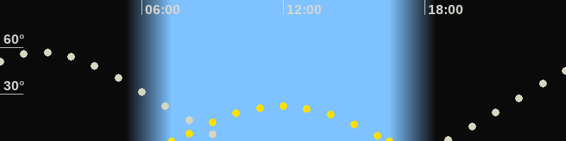 | Höchster Sonnenstand (Kulmination) | 11:54 Uhr (h = 22.4°) |