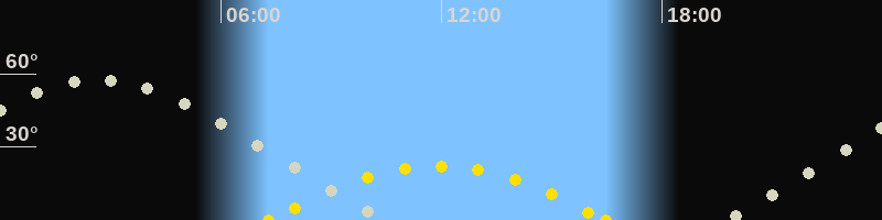 | Höchster Sonnenstand (Kulmination) | 11:54 Uhr (h = 22.1°) |