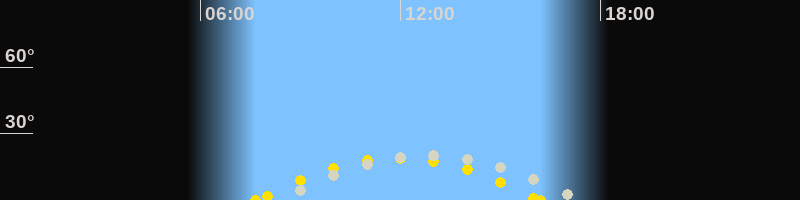 | Höchster Sonnenstand (Kulmination) | 11:56 Uhr (h = 18.9°) |