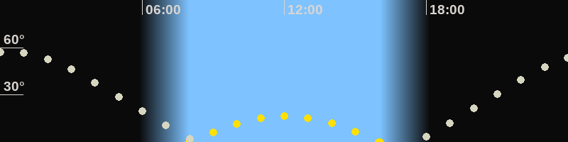 | Höchster Sonnenstand (Kulmination) | 12:01 Uhr (h = 16.6°) |