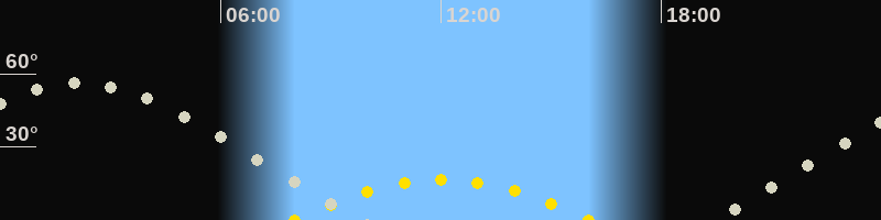 | Höchster Sonnenstand (Kulmination) | 12:02 Uhr (h = 16.4°) |