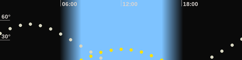 | Höchster Sonnenstand (Kulmination) | 12:03 Uhr (h = 16.3°) |
