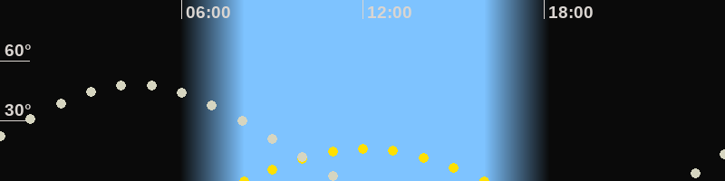 | Höchster Sonnenstand (Kulmination) | 12:03 Uhr (h = 16.2°) |