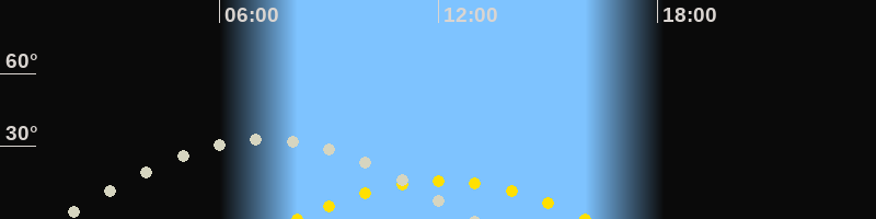 | Höchster Stand (Kulmination) | 07:18 Uhr (h=33°) |