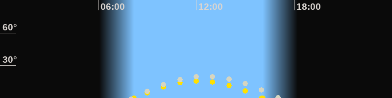 | Höchster Sonnenstand (Kulmination) | 12:08 Uhr (h = 15.8°) |