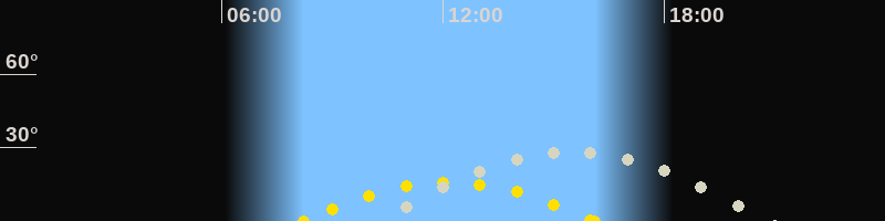 | Höchster Sonnenstand (Kulmination) | 12:10 Uhr (h = 15.9°) |