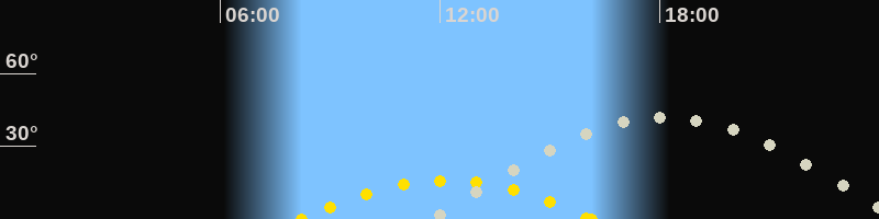 | Höchster Sonnenstand (Kulmination) | 12:11 Uhr (h = 16°) |