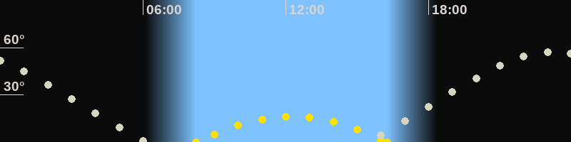| Höchster Sonnenstand (Kulmination) | 12:14 Uhr (h = 16.5°) |