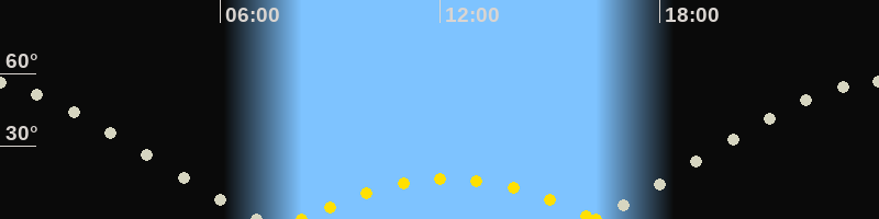 | Höchster Sonnenstand (Kulmination) | 12:15 Uhr (h = 16.6°) |