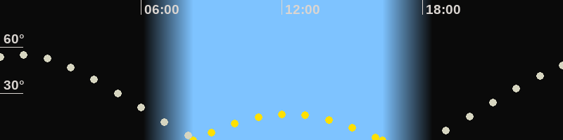 | Höchster Sonnenstand (Kulmination) | 12:15 Uhr (h = 16.8°) |