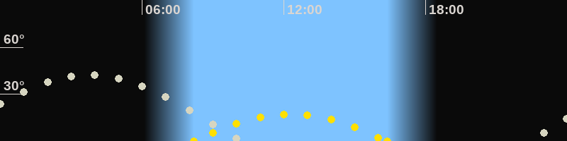 | Höchster Sonnenstand (Kulmination) | 12:17 Uhr (h = 17.3°) |