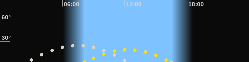 | Höchster Stand (Kulmination) | 07:30 Uhr (h=24.3°) |