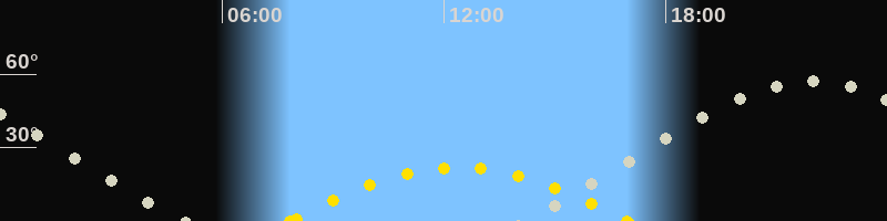 | Höchster Sonnenstand (Kulmination) | 12:23 Uhr (h = 21.9°) |