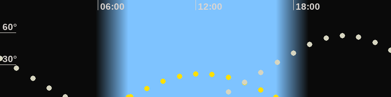 | Höchster Sonnenstand (Kulmination) | 12:23 Uhr (h = 21.6°) |
